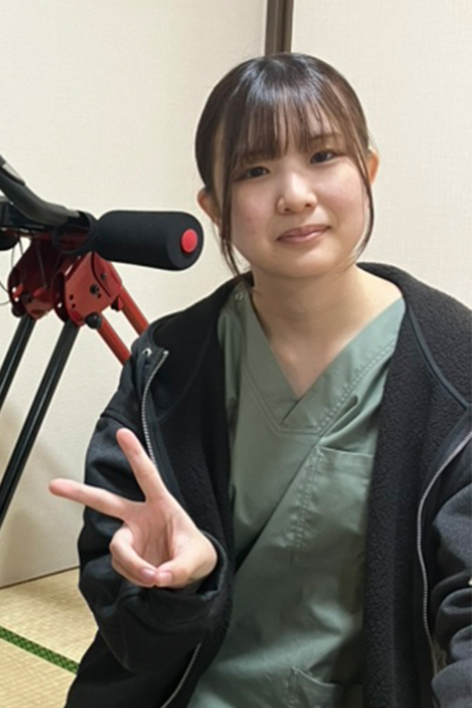 リハビリを通じてご利用者様が笑顔になっていただけたら、私自身も嬉しいです!ご利用者様一人一人の気持ちに寄り添い、リハビリを通じでよい関係を築いていけるようにがんばりたいです。